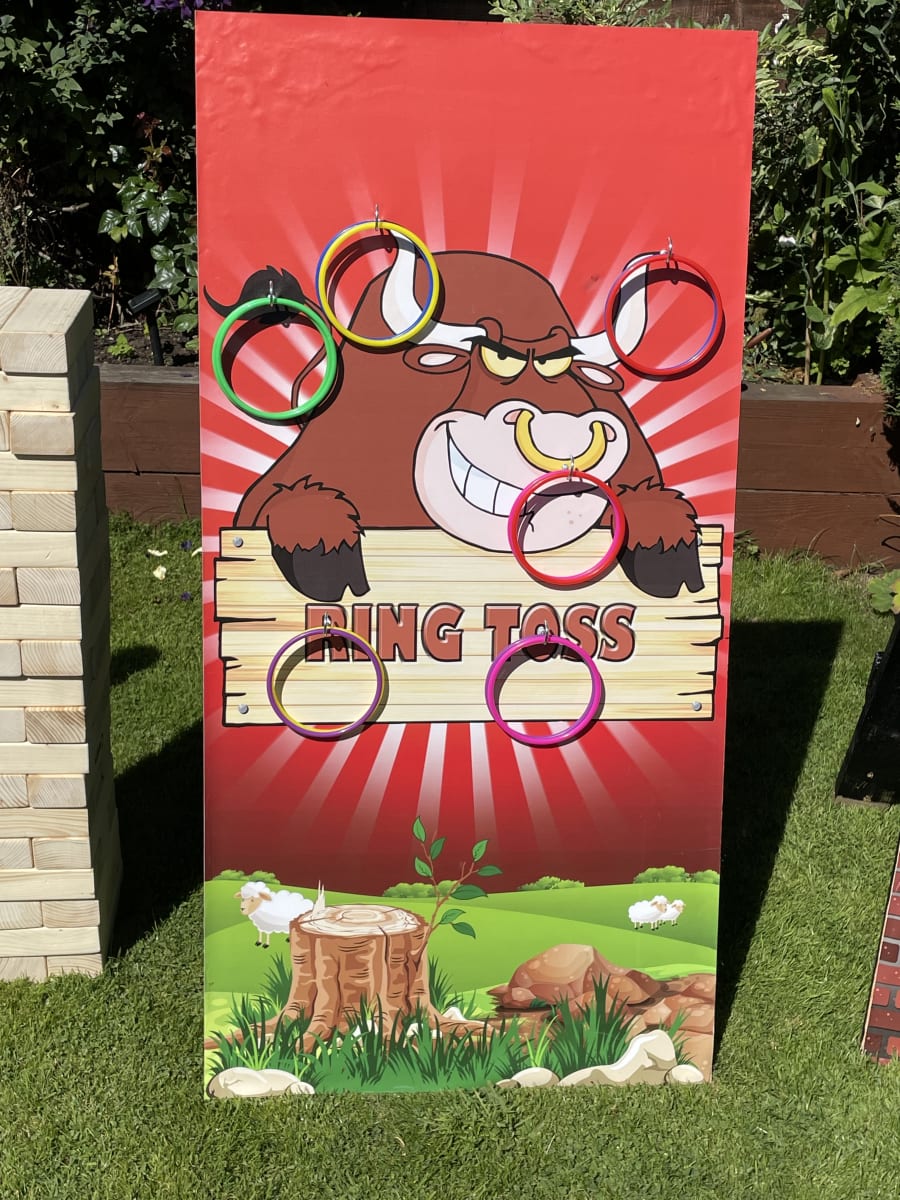 Can you toss the rings on the hooks? it isn't as easily as it looks but it is a great team building game or a fun addition to your special event, Comes with 5 Rings and requires minimal space but with maximum fun you cannot go wrong booking the ring toss, Maybe having this as extra game when booking one of our