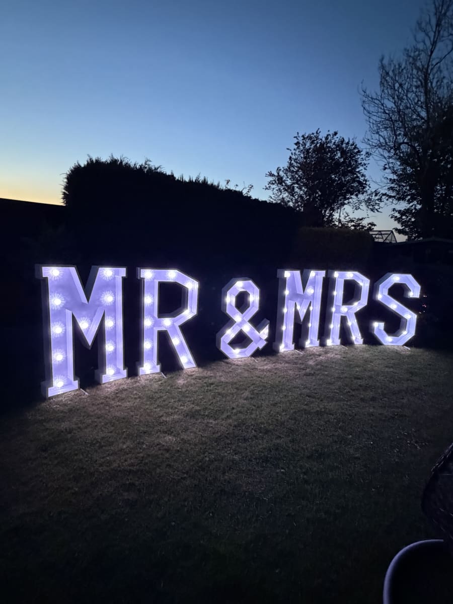 Reserve the 4ft Mr & Mrs Light Up Letters today. Perfect for weddings, receptions and engagement parties. We also offer Wedding game hire, Crazy golf hire and Bouncy castle hire to keep guests entertained. Fast quotes and flexible delivery across Northampton, Kettering, Weedon, West Haddon, Crick, Wellingborough, Thrapston, Towcester and Olney. Contact us to check availability and lighting colour options. ❤️