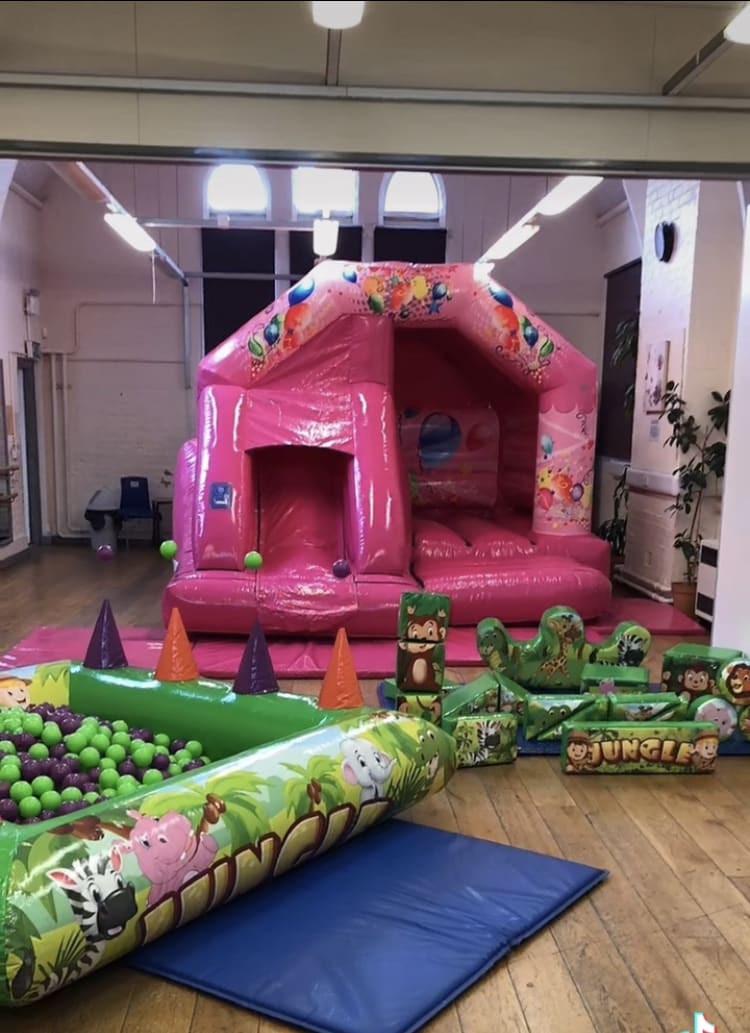 It is a large hall divided in to two rooms but can open up in to one large room.. There is some low light fittings so we would only recommend no bigger than 11ft castles and space for games or soft play, It has onsite toilets and a big car park.