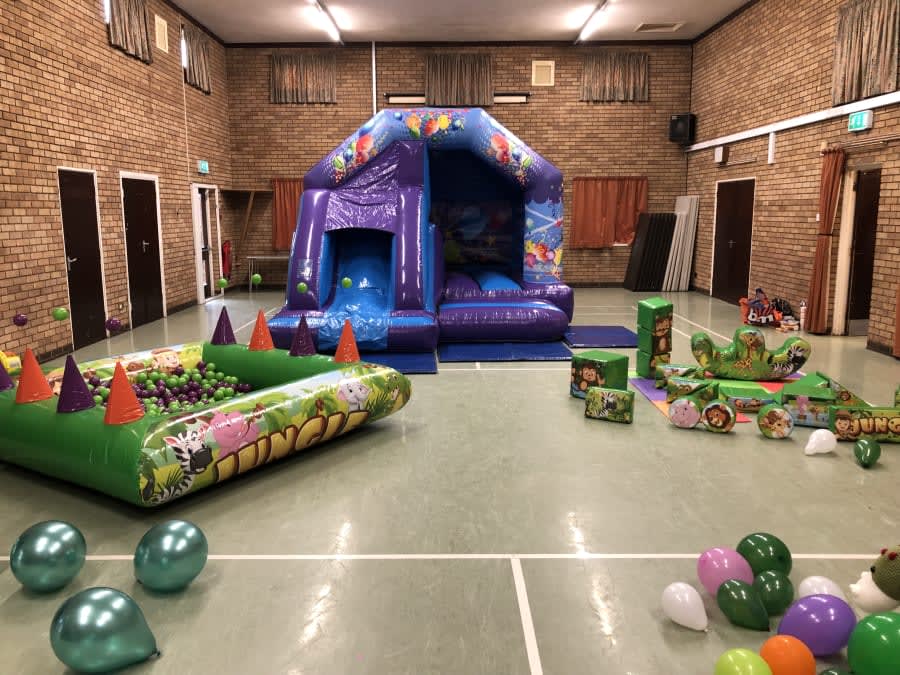 This has a large hall with onsite parking and toilets with plenty of space for any of our inflatables and fun games tables chairs and still space to spare.