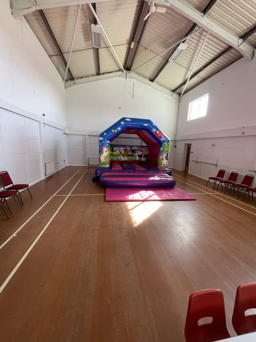 Is a good size venue, big enough for bouncy castles, with large onsite car park, Toilet facilities however not sure if it has a kitchen but does have a bar in the next room but do not know if its open throughout the day.