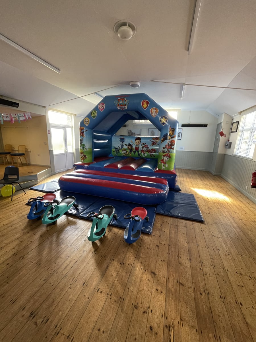 Is a smaller venue that would only be able to fit a 12x12ft castle, does still provide enough space for seating and also has kitchen and toilet facilities. There is also a option to go outside the venue.